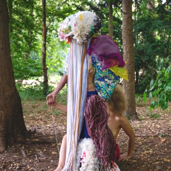 Marion Carriau a invité des enfants d’Uzès à participer à la création Des forêts Des lunes. Elle a inventé avec eux collectivement une mythologie, une civilisation fictive et a questionné notre rapport au sacré, au rituel.