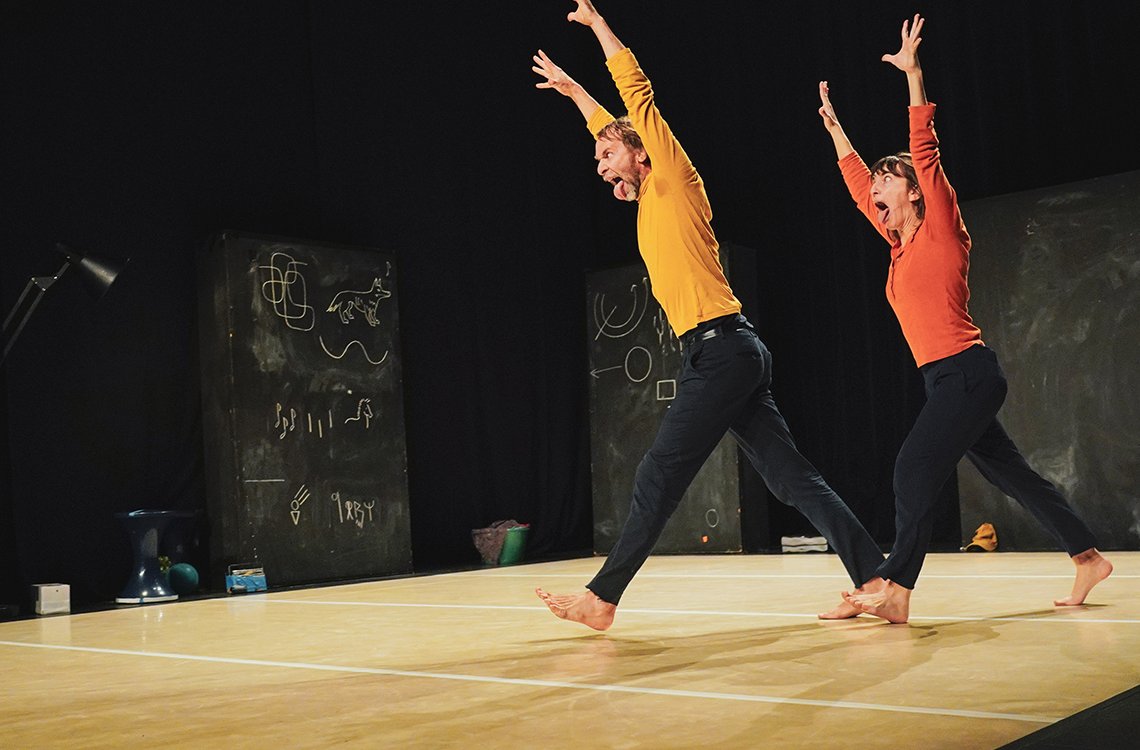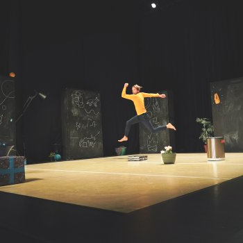 Dans ce spectacle entre danse théâtre et dessin, les deux interprètes nous invitent à laisser libre-cours à notre fantaisie : et si on pouvait récréer le monde ? Et d’ailleurs, le début c’était quoi ? Il était comment le monde avant qu’on l’appelle le monde ? On cherche, on trouve des réponses en danse, en mots, en dessin, on efface, on réessaie…même les objets sur le plateau essaient de nous aider ! Pourquoi un arbre est une poule ? invite les enfants comme les adultes à s’offrir le droit d’imaginer une autre réalité, un monde où tout devient possible, même dessiner sur les murs et le tapis !