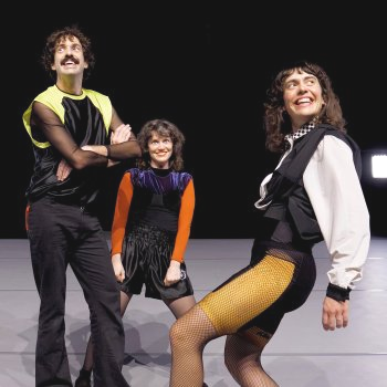 Après la pandémie et le sentiment d’isolement qui l’a suivi, Jonas Chéreau est allé à la rencontre de personnes de tous âges et de tous horizons pour tenter, par le rire, d’interroger le sentiment de joie, cette émotion insaisissable. Sur le plateau, il est accompagné de Catherine Hershey et d’Emma Tricard — trois physicalités très différentes, un absurde cultivé ensemble. Leurs corps montent, se portent, se chatouillent, cherchant ces zones où le mouvement invente la joie, le rire surgit malgré soi et où le contrôle lâche.