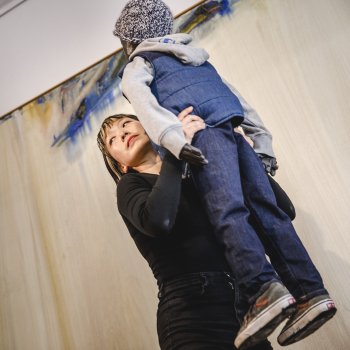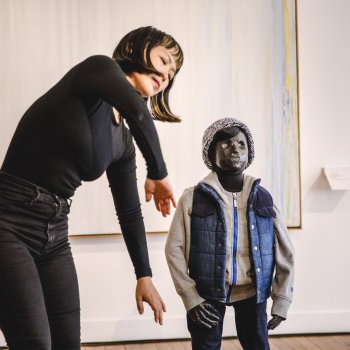 Ce travail a commencé par le dessin d’un oignon. Les couches ressemblent à plusieurs mains qui s’offrent pour aider et augmentent progressivement en taille autour d’une petite pulpe au milieu, comme une famille construite autour d’un enfant (tamanegi signifie oignon en japonais). Ikue utilise dans cette version in situ une effigie de son fils grandeur nature pour représenter le lien entre une mère et son enfant. Une pièce adaptée pour la Médiathèque, qui nous touche en plein cœur.