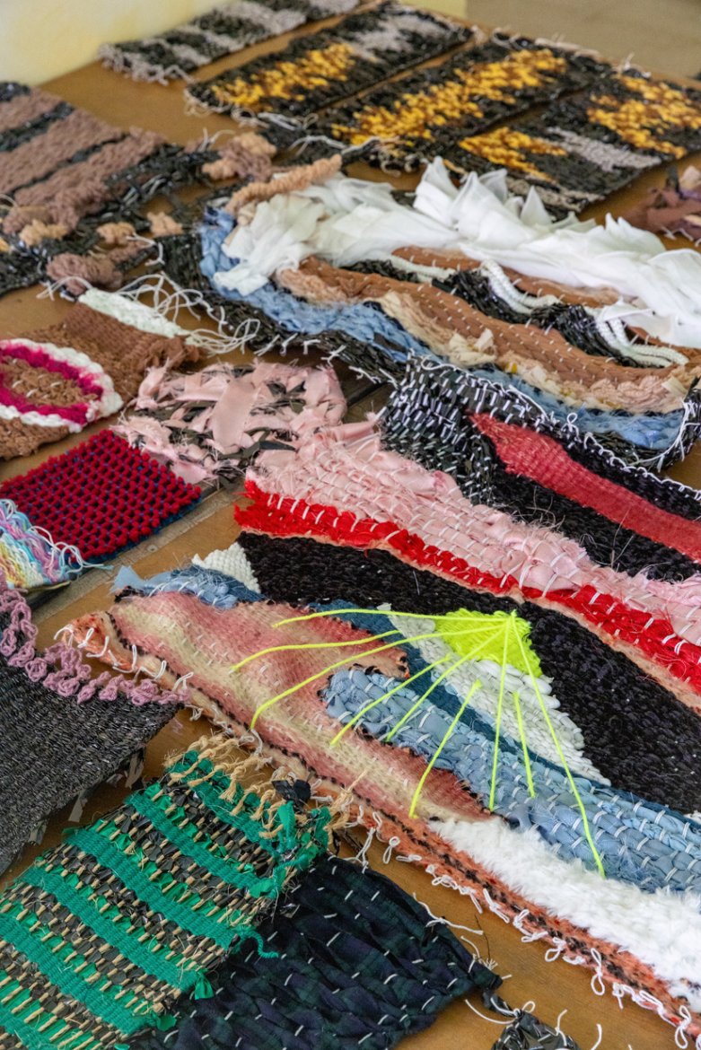 Pendant plusieurs mois, Marion Carriau et Maeva Cunci sont allées à la rencontre de groupes d’habitants et habitantes du Gard pour tisser des matériaux de récupération. Elles ont ensuite assemblé tous les tissages pour créer une grande canopée protectrice, installée sur le site du festival.